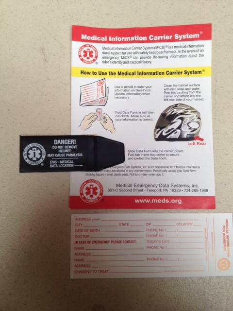I went on a sportbike group ride and some of the girls had these on their helmets. I think it's a GREAT idea and found a source after several month's searching. They are $2 each(my cost). I have about 20 left currently and can order more when needed. I'll bring what I have to the 1st Aid Class in Feb,or you can contact me directly any time.