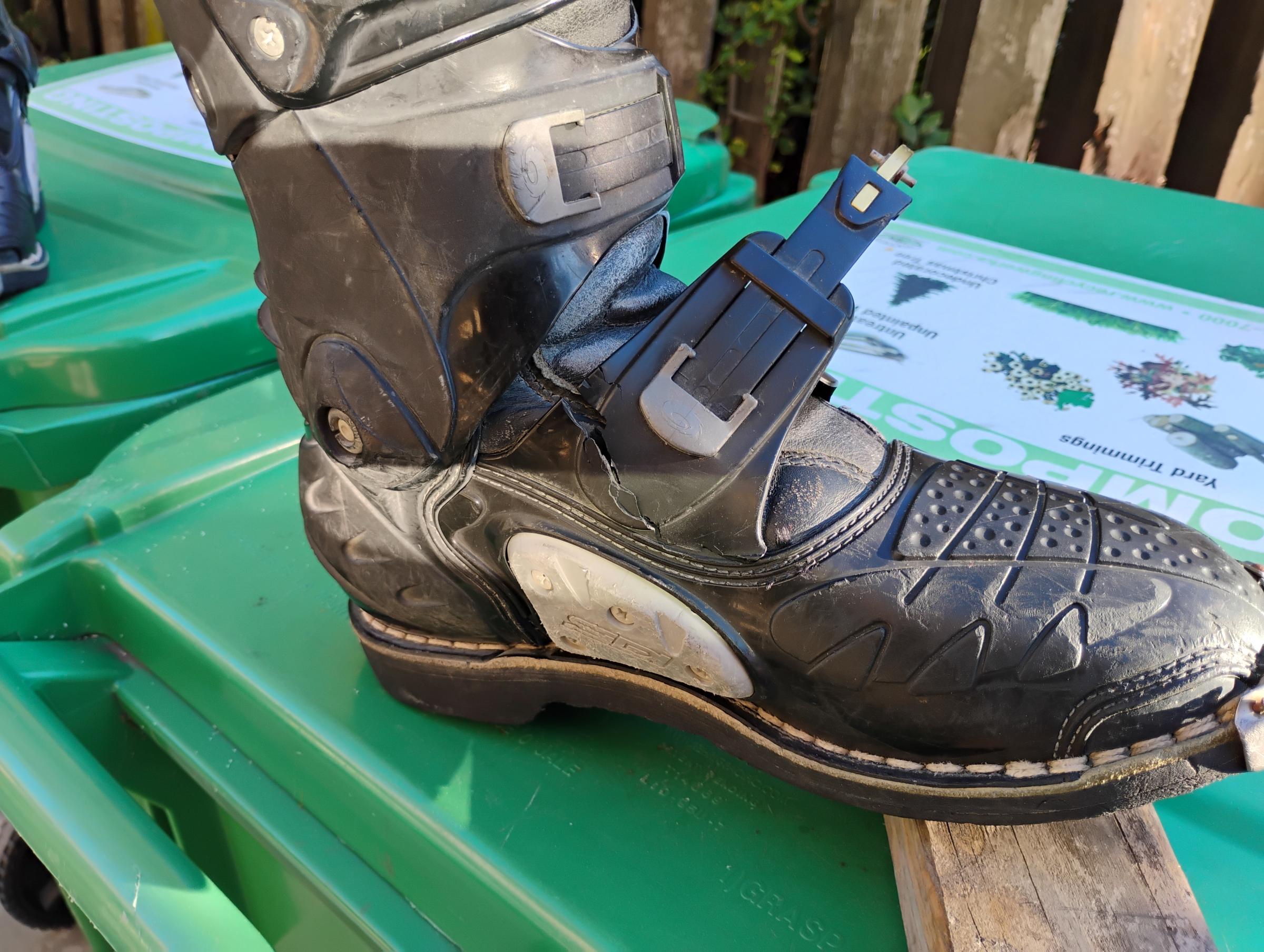 papaalex 5 Posted February 26 Hey Guys, I was checking my gears and came across broken low strap holders on both SIDI Crossfire original boots. The boots are about 20 years old, I think plastics have disintegrated. I have a couple questions hoping some of you might be familiar with the problem. Your input is greatly appreciated. 1. Do you think it is fixable? 2. Is it worth of fixing, the whole boot shell could be a goner by now? Please, see the picks. Thanks, Alex. Share this post Link to post Share on other sites