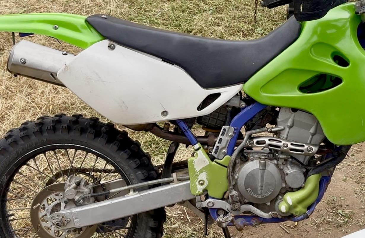 SpaceCowboy 74 Posted April 8 (edited) My buddy bought a 1995 klx 250 that came with one of those cheap fleabay full exhaust systems. Of course it's crazy loud and doesn't have a spark arrestor. Unfortunately exhaust options for that year bike are limited and expensive or in poor condition. I searched far and wide on the internet and most sources say the klx changed enough in 06 or 07 that exhausts are not cross compatible after that. THAT IS A LIE. I found one random forum post that mentioned putting a newer exhaust on an older bike. So I found a full stock exhaust system from a 2025 klx300 street legal machine locally in Oceanside for $100. Cheaper and in better shape than anything on fleabay. Worth the gamble. Sure enough, it bolts right up to the 95 klx250. Fitment is perfect. It's ultra quiet and I'm pretty sure it has a cat in there and it's heavy, but at least we can ride around Big Bear without burning the place down. And now we know that probably any klx 250/300 exhaust will fit, so finding another option will be much easier going forward. We did have to plug the o2 sensor bung. So, though the klx has changed throughout the years, but the cylinder head exhaust mount and the mounts on the subframe remain the same throughout the years. They did add an o2 sensor bung at some point, I don't know when. If this info was available before it would have saved us some annoyance. Edited April 8 by SpaceCowboy Pic added Share this post Link to post Share on other sites